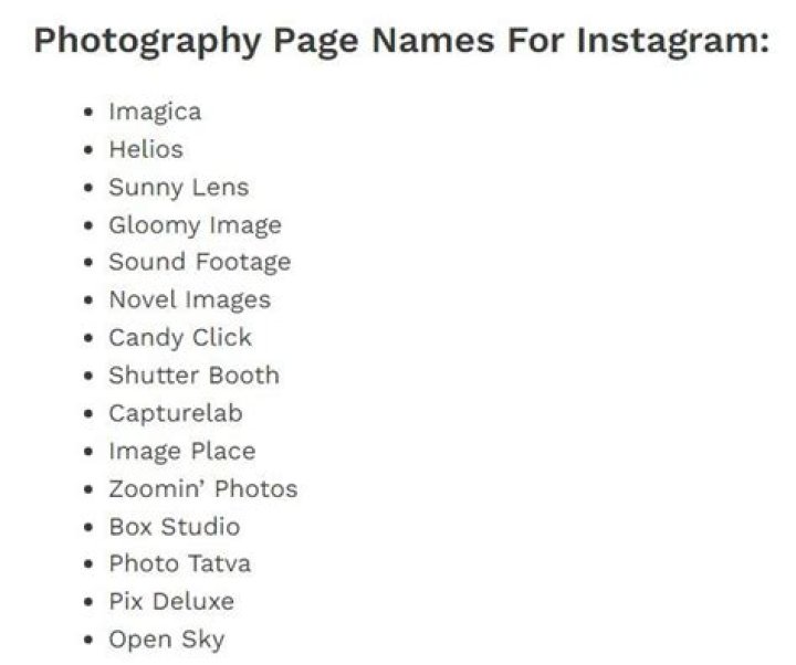 Names for Photography Accounts
